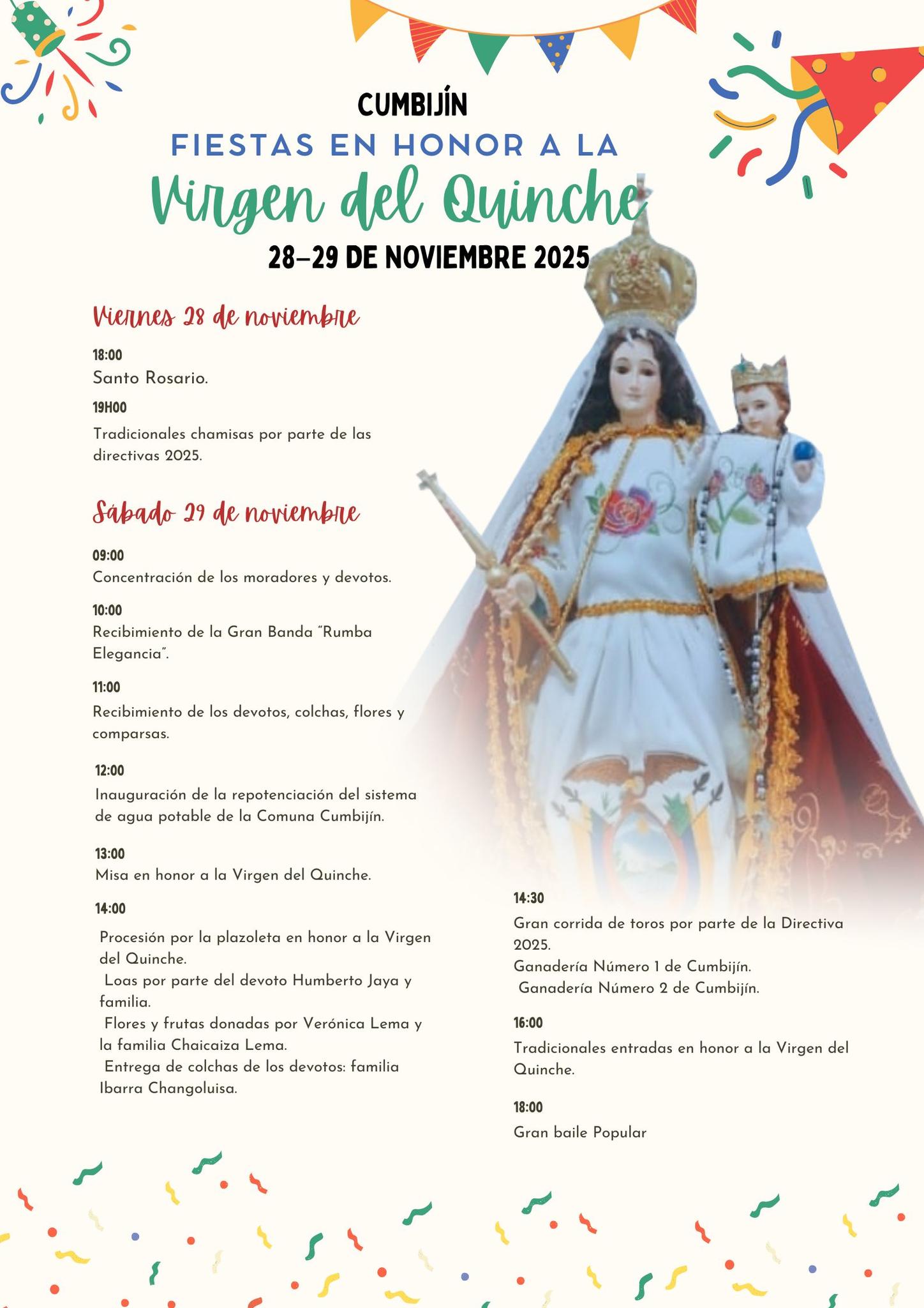 Este 28 y 29 de noviembre, Cumbijín vive las festividades en honor a la Virgen del Quinche con fe, música y tradición. Ver publicación #FecosSalcedo #GestiónParaElCambio #ComunicaciónFecos