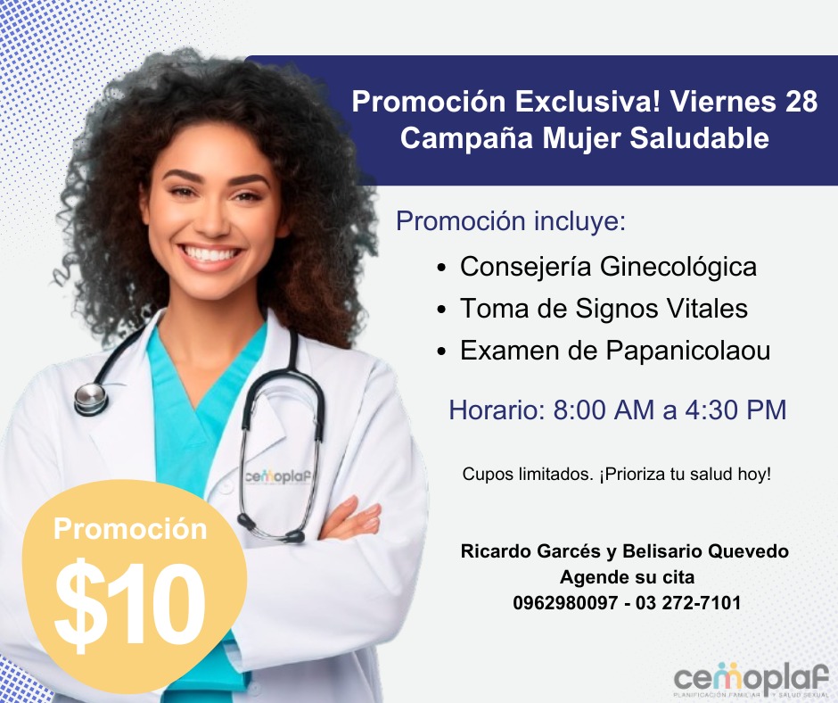 Este viernes 28 y lunes 1 de diciembre, CEMOPLAF Salcedo invita a la Jornada Integral de Salud con servicios médicos a solo $10, que incluyen campaña Mujer Saludable y actividades por el Día de la Prevención del VIH/SIDA, con atención profesional de 08h00 a 16h30, en Ricardo Garcés y Belisario Quevedo. Ver publicación #FecosSalcedo #GestiónParaElCambio #ComunicaciónFecos