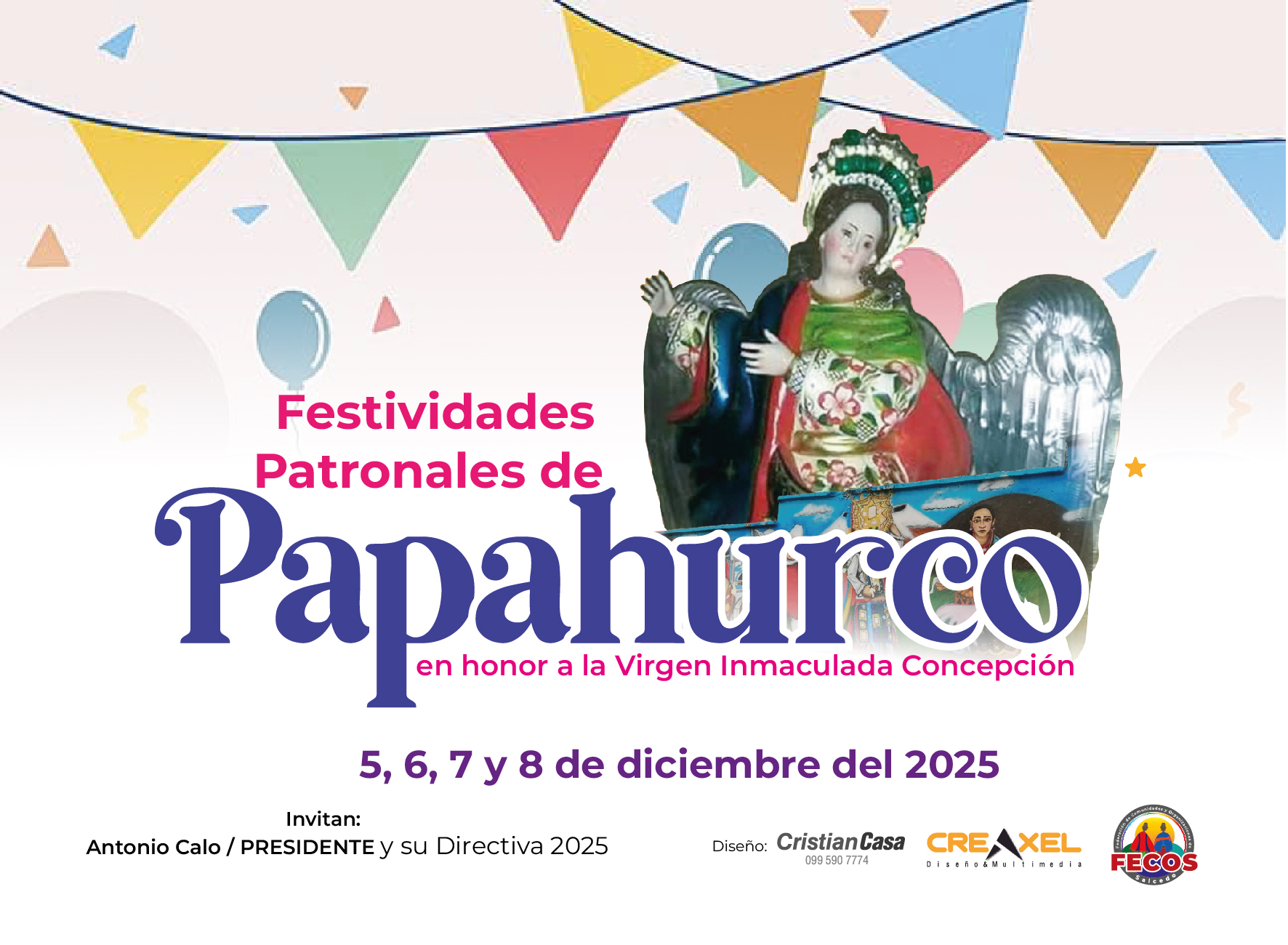 Del 5 al 7 de diciembre de 2025, Papahurco vivirá jornadas de fe, tradición y unión comunitaria en honor a la Virgen Inmaculada Concepción. Ver publicación #Papahurco2025 #FiestasTradicionales #FecosSalcedo #GestiónParaElCambio #ComunicaciónFecos