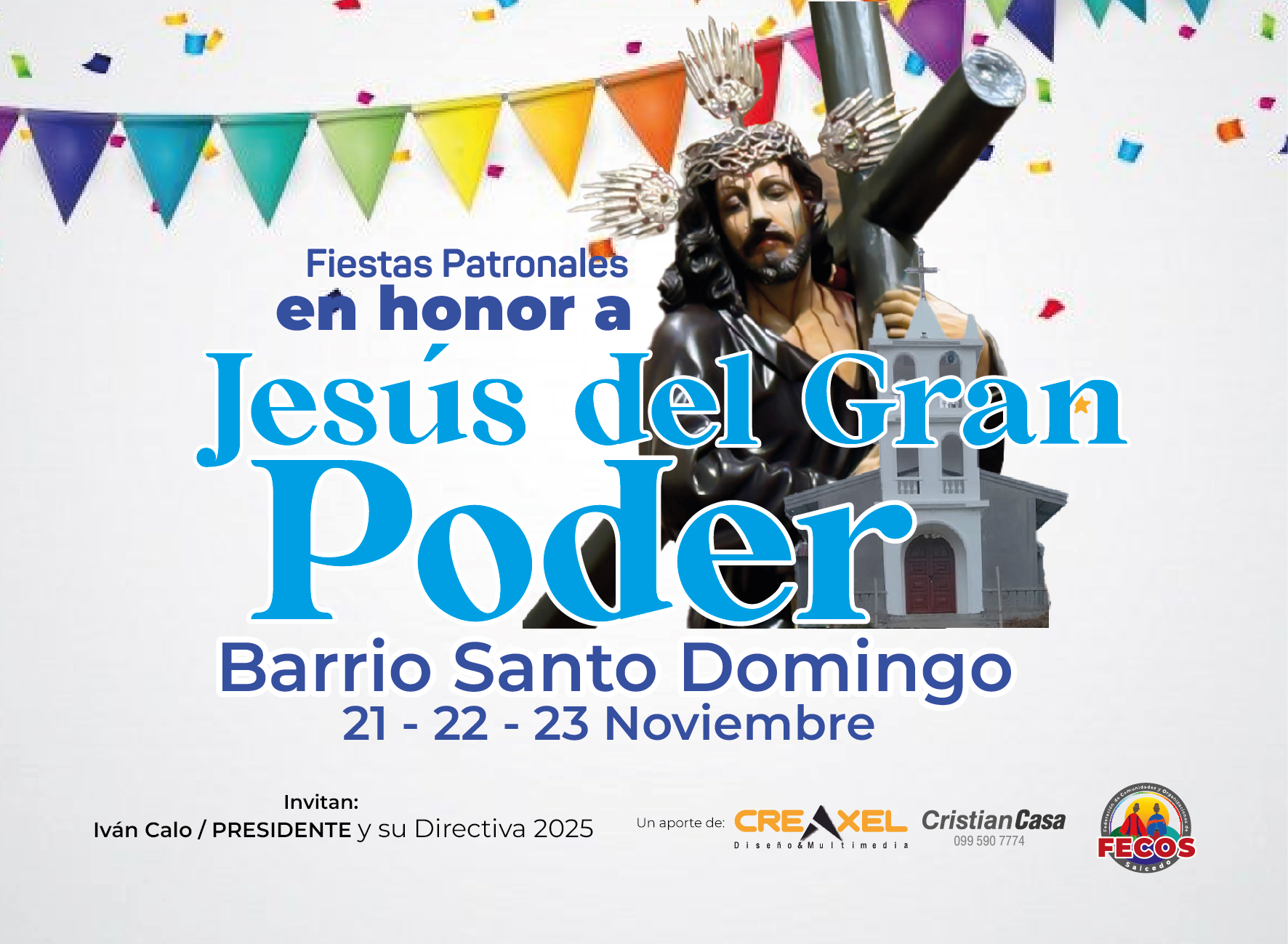 Del 21 al 23 de noviembre, el barrio Santo Domingo celebra las Fiestas Patronales en honor a Jesús del Gran Poder, uniendo fe, cultura y comunidad con música, danza y actos litúrgicos. Ver publicación #FecosSalcedo #GestiónParaElCambio #ComunicaciónFecos