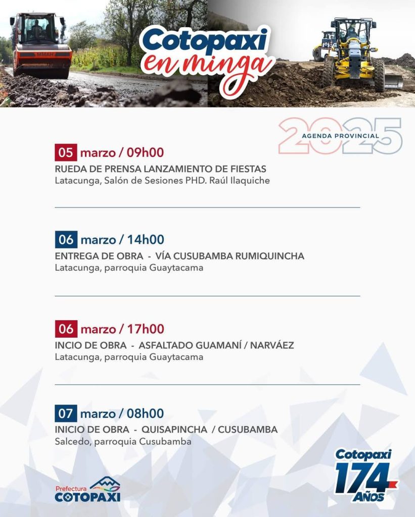 18 Mar Agenda Provincial 2025 Celebramos 174 años de historia de Cotopaxi con actividades y eventos destacados para toda la provincia. ¡Viva Cotopaxi!. Ver publicación #FecosSalcedo #GestiónParaElCambio #ComunicaciónFecos 0 Informativo