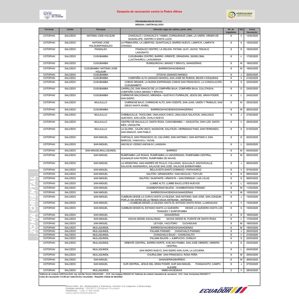 06 Mar Campaña de vacunación contra la fiebre aftosa Del 7 al 22 de marzo de 2025, se realizará la vacunación en comunas y barrios de la #zonaOriental. Protege a tu ganado y asegura su salud. Ver publicación #FecosSalcedo #GestiónParaElCambio #VacunaciónGanadera #FiebreAftosa #GanaderíaSegura #SaludAnimal #ProducciónSostenible #ComunicaciónFecos 0 Informativo