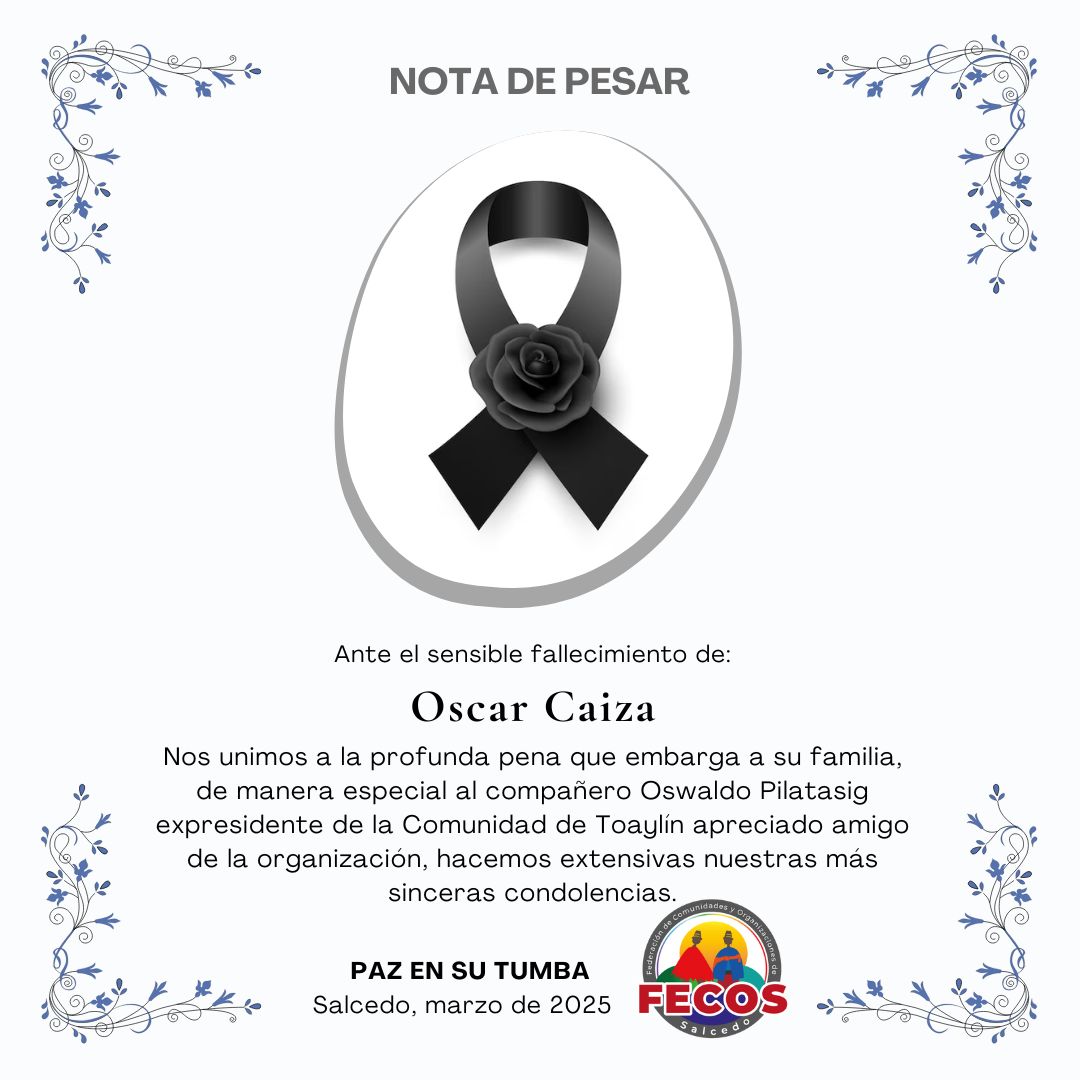 Expresamos nuestras más sentidas condolencias por el fallecimiento del Sr. Oscar Caiza, acompañando con solidaridad y respeto a su familia y seres queridos en este momento de dolor. Que su recuerdo y legado permanezcan siempre en nuestra comunidad. Ver publicación #FecosSalcedo #GestiónParaElCambio #ComunicaciónFecos