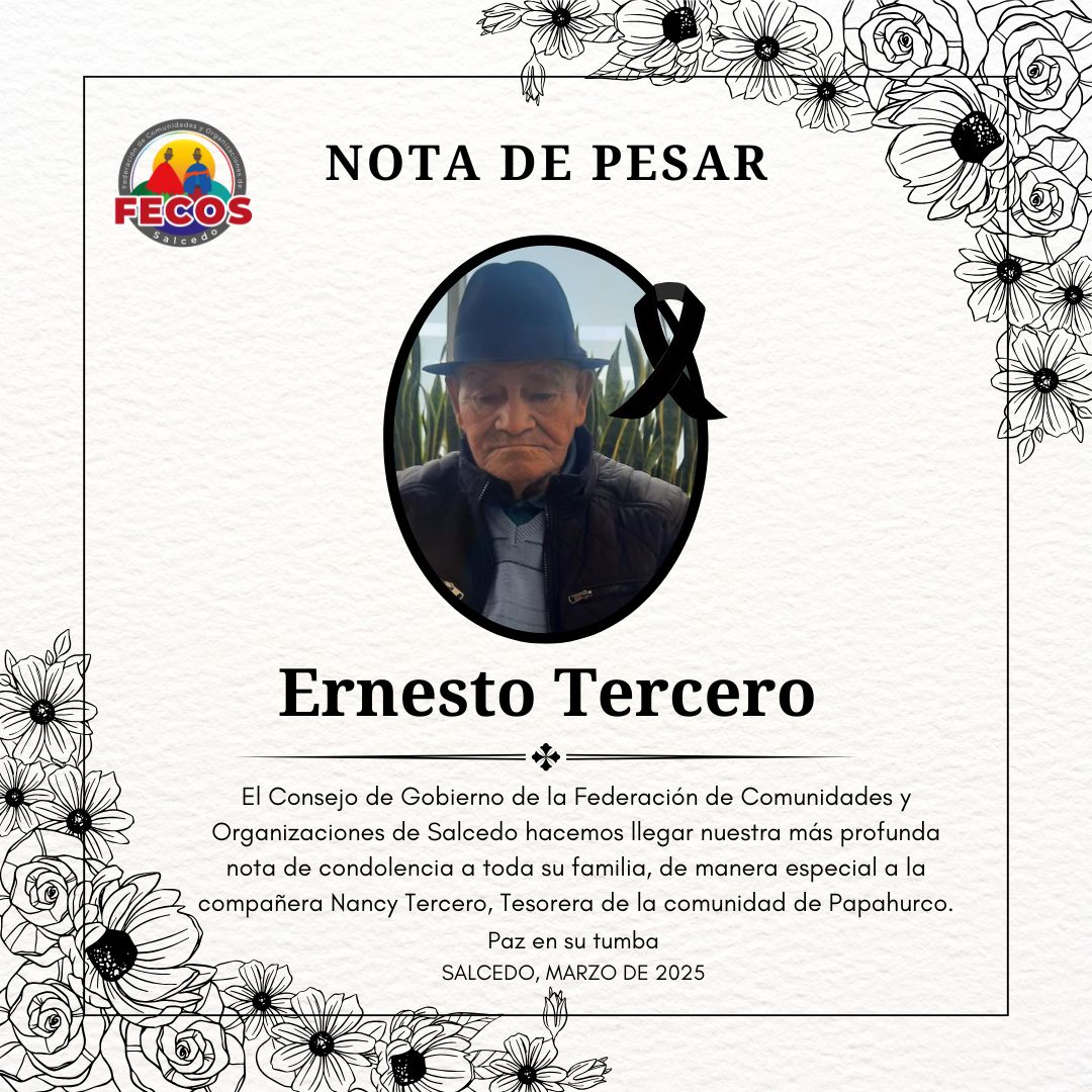 Lamentamos el fallecimiento de don Ernesto Tercero y acompañamos a su familia y amigos en este difícil momento. Que descanse en paz. Ver publicación #FecosSalcedo #GestiónParaElCambio #ComunicaciónFecos