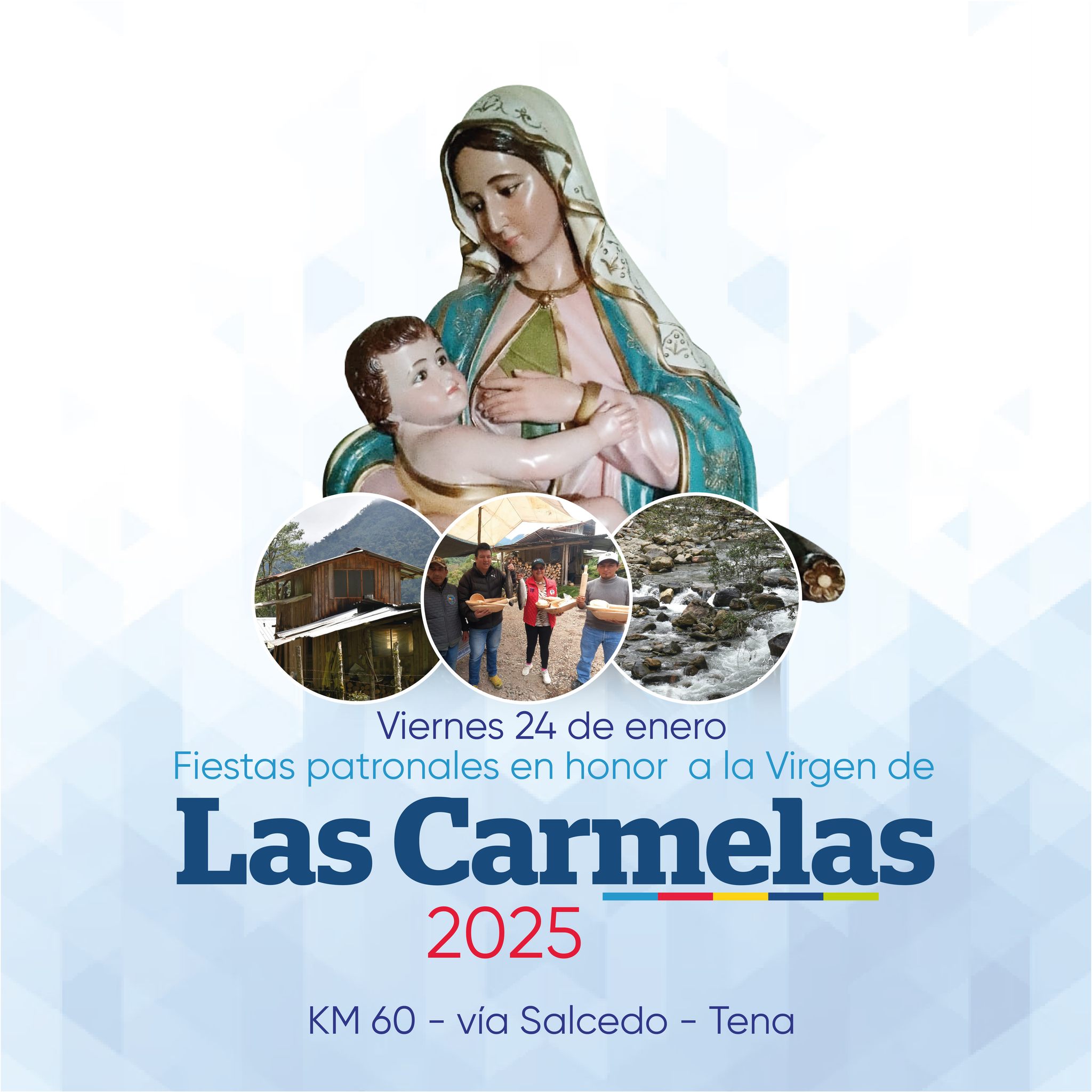 Este 24 de enero de 2025, en el Km 60 de la vía Salcedo–Tena, se celebrarán las Fiestas Patronales en honor a la Virgen de las Carmelas, una jornada de fe, cultura y tradición que promueve el turismo comunitario, la gastronomía local y las expresiones artísticas. Ver publicación #FiestasDeLasCarmelas #TradiciónYFe #CotopaxiTeEspera #FecosSalcedo #GestiónParaElCambio #ComunicaciónFecos