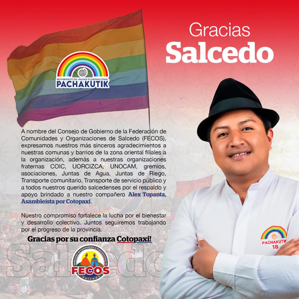 Agradecemos el apoyo y la confianza brindados a Alex Toapanta, asambleísta por Cotopaxi, reafirmando la unidad y el compromiso de seguir trabajando juntos por el desarrollo, la identidad y el bienestar de nuestras comunidades. Ver publicación