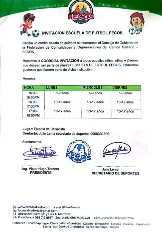Inscripciones abiertas en la Escuela de Fútbol FECOS